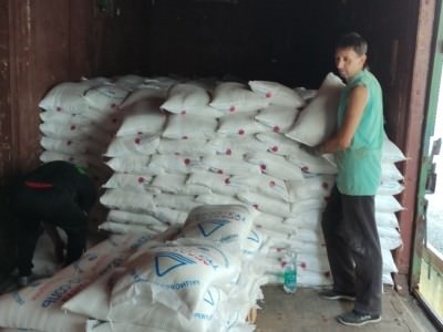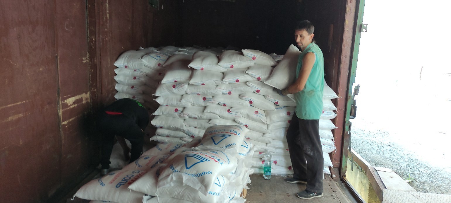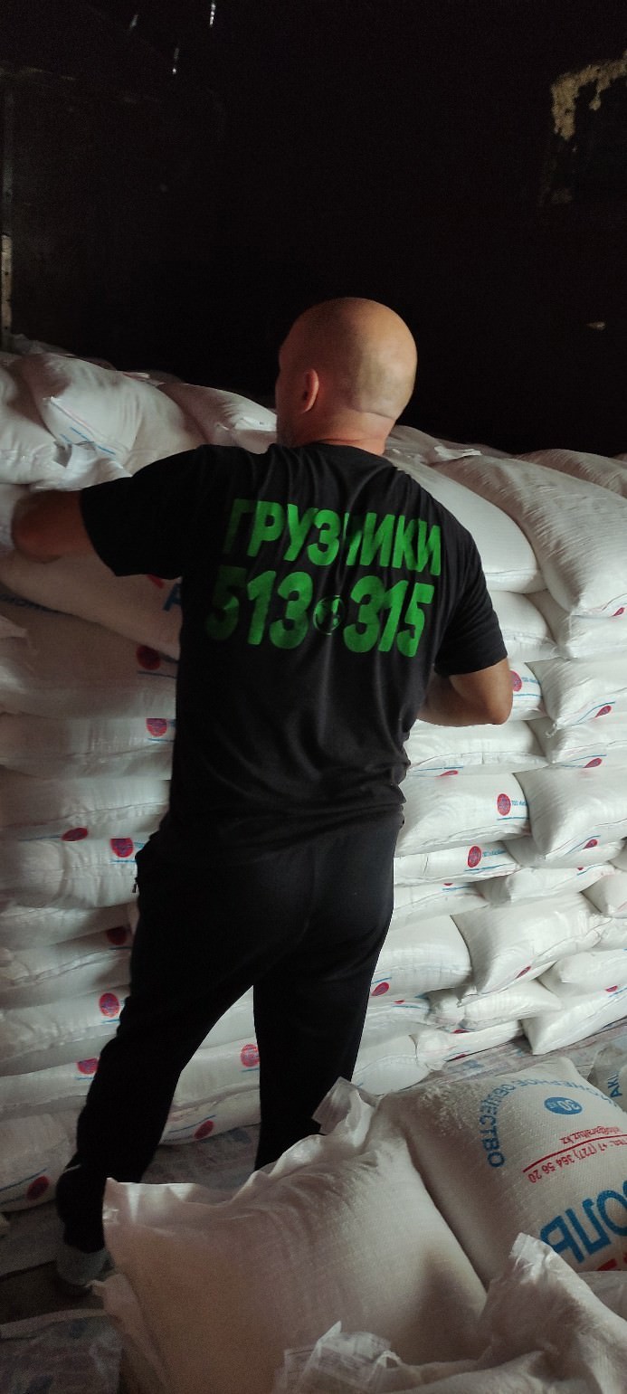Разгрузка вагона с солью 67 тонн. Мешки с солью весом 50 кг каждый. На выполнение поставленной задачи были отправлены 4 грузчика. Для выполнения заказа открыли двери вагона, вплотную подогнали машину с кузовом. Двое в машине, двое в вагоне, перетащили за 3 часа.